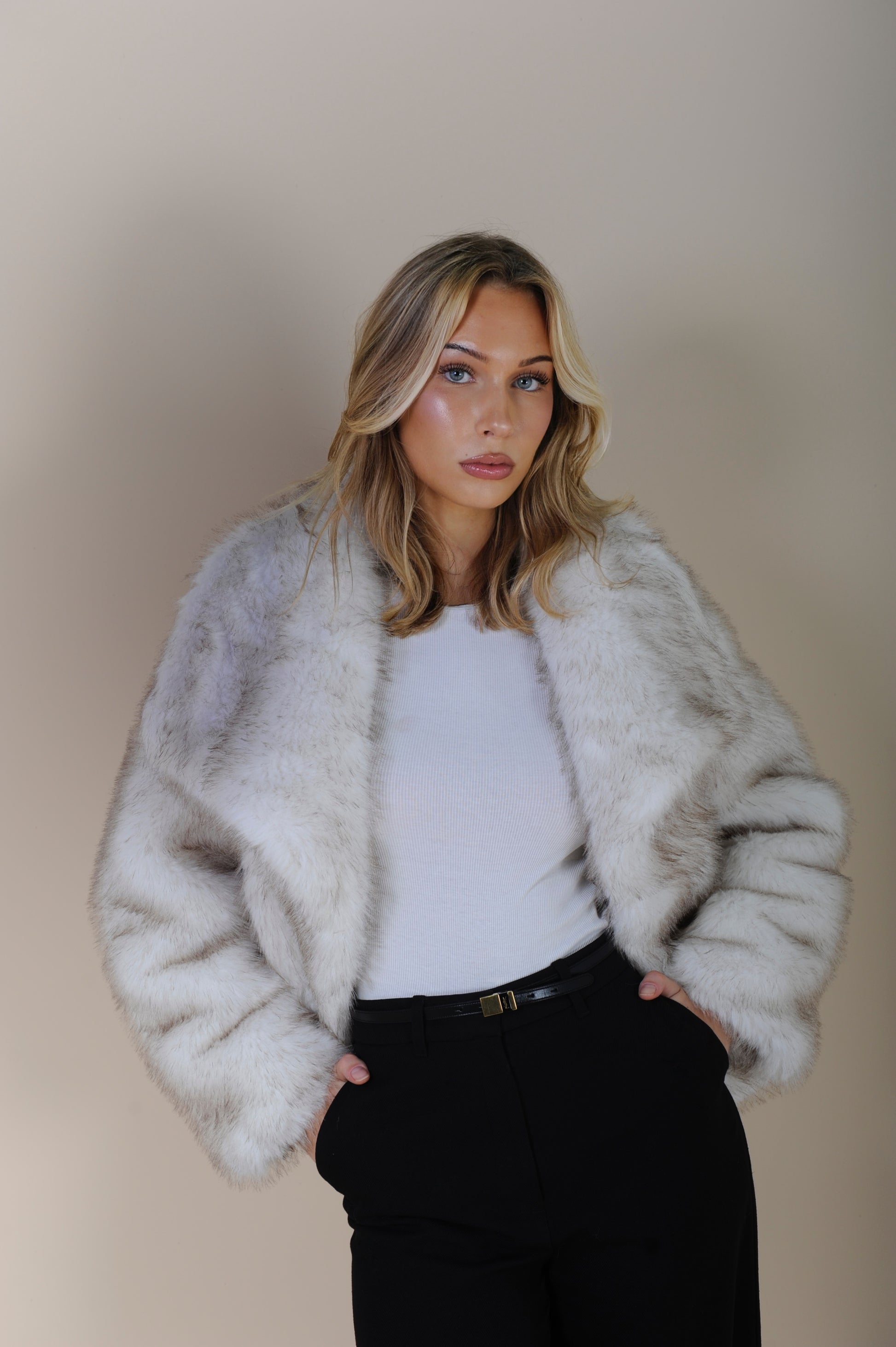 Vegan faux fur jacket.
